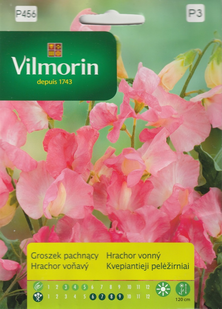 Růžová odrůda hrachoru vonného (Lathyrus odoratus). Popínavá rostlina, výška až 120 cm. Květy intenzivní růžové barvy a příjemné vůně.