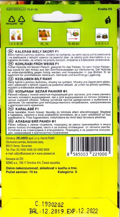 Pěstování: Vegetační doba rostliny je přibližně 75 – 80 dní.