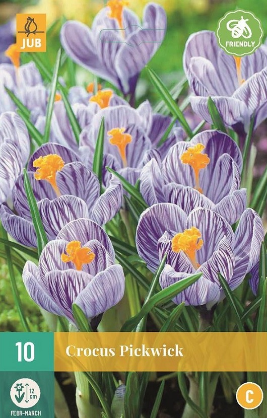 Cibuloviny krokusu balené v kartách s barevným obrázkem.