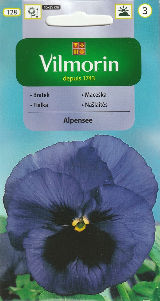 Alpensee je modrá odrůda macešky velkokvěté – švýcarské (Viola wittrockiana). Kvete druhým rokem. Rostlina má velmi velké květy sytě modré barvy.