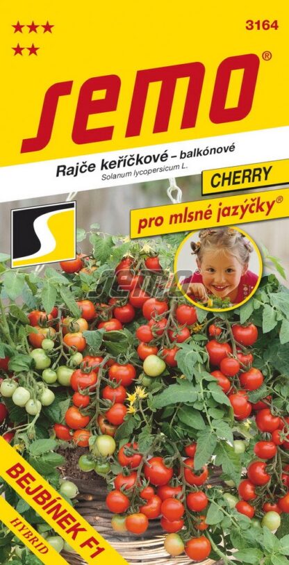Bejbínek F1 je raná odrůda keříčkového rajčete (Solanum lycopersicum) s červenými, kulatými a třešňovými (cherry) plody výborné chuti o průměrné hmotnosti 18 – 23 gramů. Díky převislému růstu je rajče Bejbínek F1 ideální pro pěstování v závěsných nádobách a truhlících, např. na balkónech (ale samozřejmě ho lze mít i na záhoně). Protože může kaskáda výhonů s plody dosáhnout délky 50 až 70 cm, tak doporučujeme zavěšovat nádoby dostatečně vysoko. Rajče Bejbínek F1 zaujme typicky rajčatovou chutí, tedy vyváženou sladkokyselou příchutí s rajčatovým aroma (odrůda je zařazena i do kolekce osiva Pro mlsné jazýčky).