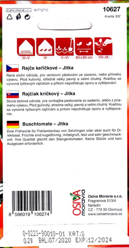 Jitka je raná stolní odrůda keříčkového rajčete (Solanum lycopersicum) určená pro venkovní pěstování ze sazenic nebo přímého výsevu. Plod kulovitý, středně velký, pevný a velmi chutný. Kvalitou se vyrovná tyčkovým rajčatům a přitom nepotřebuje oporu a vyštipování.