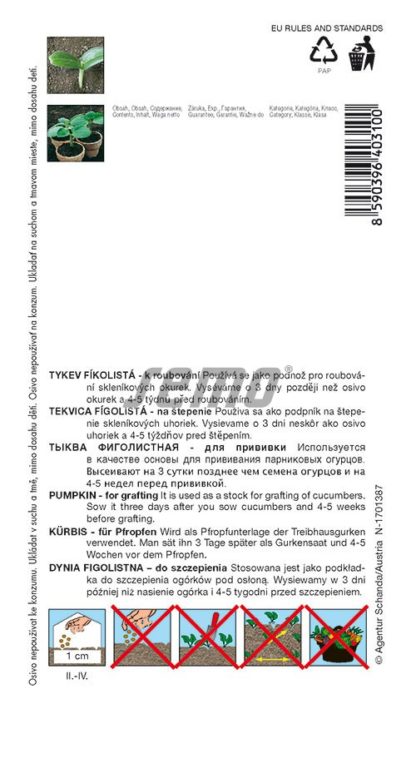 Pěstování: Semena tykve vyséváme cca o 3 dny později než osivo okurek a 4 – 5 týdnů před samotným roubováním. Roubujeme do boku nebo do rozštěpu ve stadiu klíčních lístků, zavážeme lýkem nebo olověným plíškem. Rostliny udržujeme několik dní při vysoké vzdušné vlhkosti. Po ujmutí roubu seřízneme vegetační vrchol tykve i s klíčními listy.